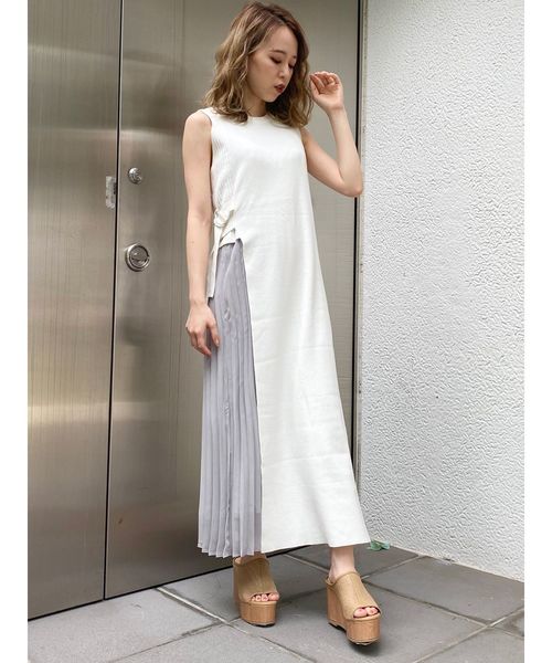 【アイテム】ニット生地部分は切り替えがなく、シンプルでキレイ目な仕様です。サイドにベルトデザインを入れる事で、体型にもたつきが出ない様なポイントを盛り込みました。プリーツ部分は、キャミOPになっており、取り外しが出来る優れものです。【スタイリング】表地とプリーツ部分のセパレート使用が可能なので、TOPS部分を使ったパンツとのスタイリングがおすすめ!デニムなどのベーシックアイテムから、柄や素材がアクセントのアイテムなども可愛いです。【気になるITEMは♡お気に入り登録】♡ボタンと押すと簡単にお気に入り登録されます◎完売アイテムの再入荷やセール情報も!気になるITEMはぽちっと♡