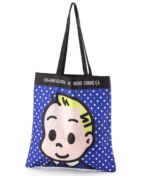 <デザイン>80年代、90年代に女子高生に「かわいい」キャラクターで爆発的人気を博した、オサムグッズとのコラボ商品です。オサムグッズのキャラクターをプリントした、モノコムサオリジナルのデザインです。当時「スクールバッグ」と呼ばれ人気のあったトートのデザインを、エコバッグにしました。少し肉厚で丈夫なポリエステル素材のリップストップ生地を使用し、裏地をつけず軽量に仕上げています。内装のポケットに収納することができます(ポケッタブル)。持ち手は、肩にかけた状態でも物の出し入れしやすい長さにしています。<仕様>内装:吊りポケット×1<取り扱い>この商品は、染料の特性上、摩擦、水濡れにより色落ちする事があります。ご注意下さい。濡れた場合は乾いた布でふきとり、陰干しして下さい。汚れ落しの為のベンジン類は使用しないで下さい。製品の装飾部分は、ていねいに取り扱って下さい。過度な引っぱり、衝撃、乱暴な扱いなどで、破損することがありますのでご注意下さい。【その他のオサムグッズとのコラボ商品♪】・95-10LP01-200 (ポーチ)・95-10LP02-200 (2WAY トート/リュック)・95-10LP04-200 (パスケース)・95-10LP05-200 (ハンカチタオル)・95-10LP06-200 (クールタオル)・95-10LP08-200 (ハンディミストファン)(C)OSAMU HARADA/KOJI HONPO※画像の商品はサンプルとなりますので実際の商品と仕様、加工、サイズが若干異なる場合がございます。※こちらの商品はFIVE FOXes独自の採寸方法となっています。本サイトのサイズガイドと採寸方法が異なる場合がありますのでご了承ください。