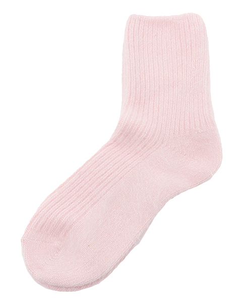 アンゴラのふわふわな毛が特徴的なソックス。 暗くなりがちな秋冬にアクセントカラーであわせていただくのもオススメです。