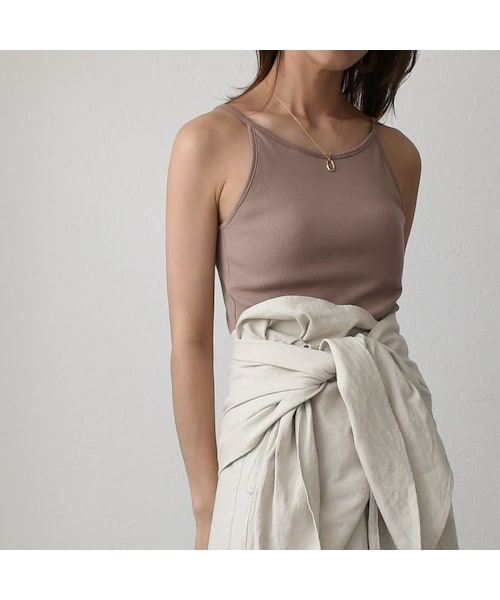 made in Japan 今年らしいアメリカンスリーブのコットンリブキャミソールです。カップ付きで、下着を気にせず1枚で着られるのが嬉しいポイント。リブ素材でヘルシーに肌見せできるキャミソールは、肩まわりを華奢にすっきりと見せてくれます。シアーシャツやサマーカーディガンなどのインナーにもぴったり。素材は綿100%のさらっとした肌さわりで着心地も良いです。 色味はリネンアイテムとも相性抜群のくすみピンクのモーヴ、カーキそして、万能カラーのエクリュの3カラーをご用意しました。どの色もこれからの時期に使いやすいカラーだと思います。 (モデル身長166cm) ■素材 綿100% ■サイズ 着丈52cm 身幅34cm こちらはネコポス便での発送となります。 発送から、翌日もしくは翌々日での到着です。