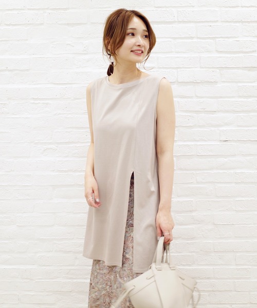 \大胆なスリットがポイントの前後2WAYタンク/定番使いのできるシンプルなカラーリングのタンクトップ。大胆に入ったスリットを前にしても後ろにしても着られる2WAY仕様なので、様々なコーディネートお使いいただけます。真夏に一枚でもさらりと着られる、少しゆとりのあるサイズ感が◎ おしりも隠れるロング丈で、気になるヒップ回りもカバーしてくれます。トレンドのシアー素材のシャツとのレイヤードコーディネートもオススメ♪**********************・前後2WAY仕様で着回し力◎・一枚でも着られる、ゆとりのあるサイズ感・お尻の隠れる丈感で、様々なボトムスとの相性◎**********************