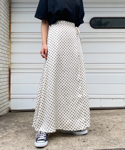 ◆サテン生地でさらっと着れるラップスカート◆