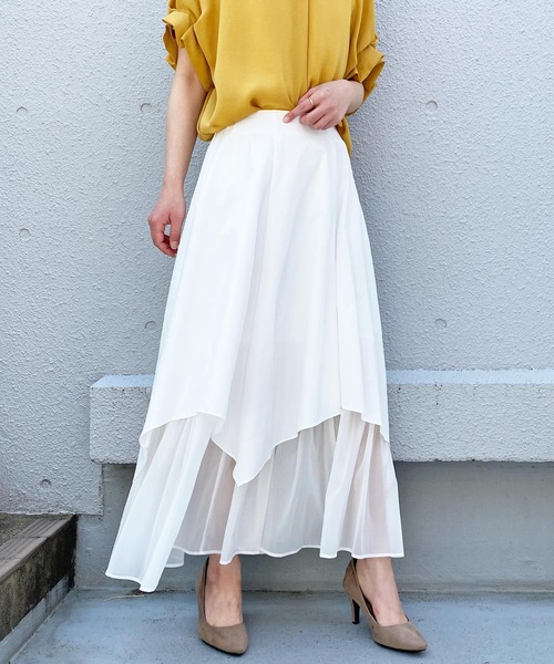異素材のレイヤードアシメスカート。 上部はイレギュラーヘムのシルエット、 中は光沢感と透け感のあるポリエステルナイロンの ギャザーで軽さも演出。 歩くたびに表情豊かでモードなルックスに仕上がっています。 トップス次第ではオケージョンにも使え Tシャツ等でカジュアルも◎ ※撮影場所や明るさにより 実際の商品と色味が若干異なる場合がございます。 ☆商品のお気に入り♡登録を押せば ”再入荷通知”や”残りわずか通知” 値下げのお知らせが届きます! お気に入りのブランド登録していただければ新商品入荷のお知らせも届きますので 是非登録してみて下さい。