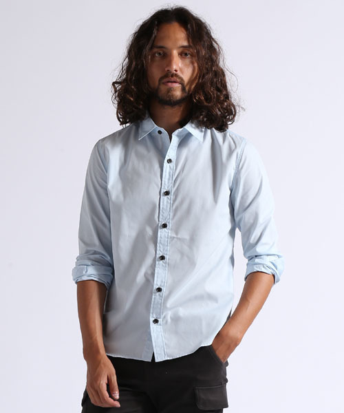 ポリエステル/コットンブロード(ポプリン)シャツが登場。たて糸とよこ糸に同じ太さの糸を使用し、たて糸をよこ糸の倍ほどの密度で織った平織りの生地。表面になめらかな光沢があり、ジャケットスタイルにはもちろんジレなどと合わせるなど少しキレイめなスタイリングにお薦め。 パトリシオ:181 cm 64 kgのモデルが Mサイズ を着用しています。 モデル:178cm 65kg 肩幅43.5cm 靴27.0cmのモデルが Mサイズを着用