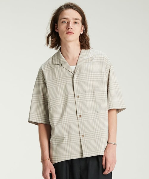 今季よりデザインを一新した、定番オープンカラーシャツ。 定番アイテムだからこそLIDNMらしい拘りを凝縮したオープンカラーシャツに仕上げました。 襟は変形パターンによる、上襟とラペル部分の切り替えを無くすことで首もとをストレスフリーにすると共に丸みを帯びた襟の返りがソフトな印象を生みます。 またボタンを少し低くすることで、Vゾーンが深めになりリラックス感をプラスし、併せて大ぶりのポケットも少し低めに設定しています。 肩は大げさにならないよう程よくドロップすることで大人な印象に仕上げています。 脇から横に入ったダーツは元々レディースのパターン展開ですが、メンズで応用することで丸みを帯びたコクーンに近いオリジナルティあるシルエットを生み出しています。 縫い代の縫製仕様も、オープンカラーシャツはロック仕様が多い中、折り伏せ仕様にすることで肌に当たる内側の仕様もケアしています。 ボタンは高級天然素材である茶蝶貝を使用。天然ならではの光沢感と自然な模様がシンプルなアイテムだからこそ映えます。