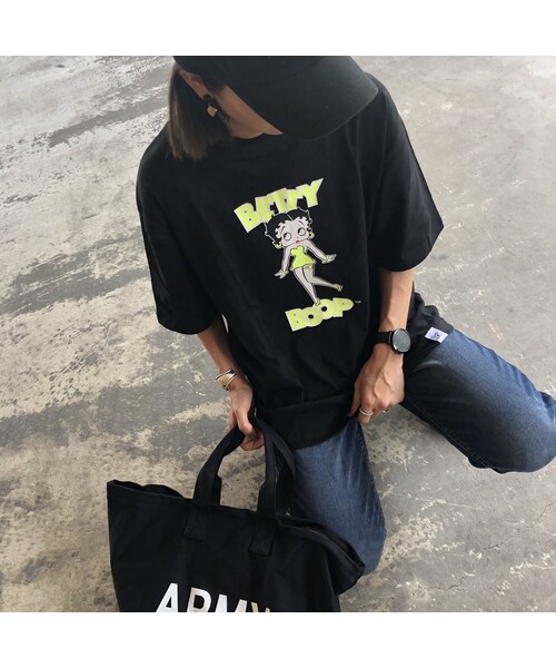 アメリカの人気キャラクター「BETTY BOOP」Tシャツ! 可愛らしいデザインと遊び心あるネオンカラーでこ洒落た雰囲気を演出♪ オーバーサイズなのでユニセックスとしても着用頂ける1枚。 トップスインはもちろん、アウトしてスキニーやゆるいボトムスと合わせるのもおススメです★ ※モデル身長:161㎝ ◆クリックポストにて代引きをお選び頂いた方は、390円プラスさせていただき、宅配便代引きにて発送させていただきますのでご了承下さい。 ◆カラー アイボリー・ブラック ◆サイズ 着丈67cm/身幅55cm/肩幅55cm/袖丈23cm/袖口幅20cm ※多少の誤差は予めご了承ください。 ◆素材 綿100% ※こちらの商品は海外縫製の為、多少歪み・縫製の甘さ(糸の出)などがある場合がございます。 予めご了承下さい。