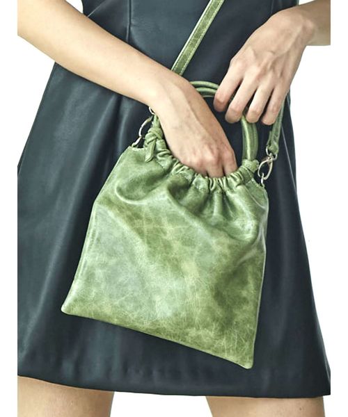 光沢感があり、VINTAGE調の色合いが特徴的な生地がスタイリッシュな印象を与えてくれます。ショルダー紐もついているので用途に応じてスタイリングを選ばずお使い頂けます。※縦22cm、横21cm※ショルダー紐長さ調整可能