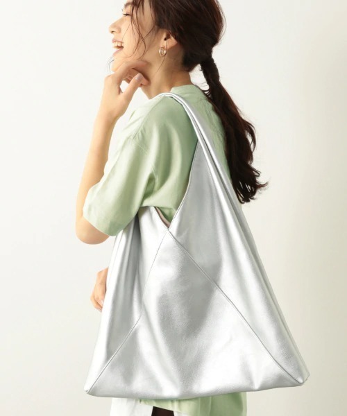 個性的なデザインBAG持つと三角に近い形になる個性的な形がポイントのバッグ。持ち手の長さもあるので肩に掛けやすく、内側や外側にポケットが付いているので収納のしやすさも○カラーにより素材感が異なるので色違いでもおすすめです。重量(ブラック)260g(アイボリー,シルバー)400g