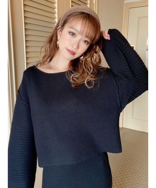 \シンプルながらエッジの効いたデザイントップス/ ぴったり肌に沿うシルエットに緩やかなカーブを描き デコルテラインを綺麗に魅せるカッティングがこだわりポイント♪ 同素材スカートとのセットアップ着用がおススメです! 【セットアップITEM】 ⇒152050822101:裾シアードッキングニットスカート