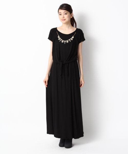 あの人気ワンピースの秋バージョン!夏に大人気だったビジュー付きのマキシワンピースが秋バージョンになって登場しました♪胸元にビジューがついた裾結びトップスと、マキシ丈のスカートが一つになったセットワンピース!合わせて着ても可愛く、別々にも使える優れものです!前のビジューは取り外し可能なので、洗濯も楽ちんですよ♪是非、こちらのマキシ丈ワンピースで秋を意識した夏スタイルを楽しんでください!