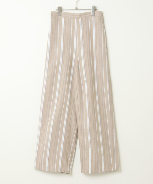 リネン混の生地を使った、さわやかなストライプ柄パンツ。 淡い色味でいろいろなトップスと馴染んでくれます。 後ろウエストがゴムになったリラックスな履き心地は、おうち時間やテレワーク中にもおすすめ! ◆ 丈が選べるサイズ展開 ◆ こちらの商品はお客さまの身長に合わせて丈がお選びいただけます。 身長が小さめ~平均の方はMサイズ、身長が大きめの方や、長めの丈で履きたい方はTM(トールM)サイズがおすすめです。 [クリーニング] ドライクリーニング可(F)
