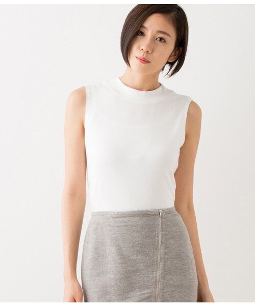 ハイネッククロップドノースリーブ。アダム エ ロペ FEMME。 「1」という数字は、すべての始まりをしめす数字。ベーシック(基本)の「1」。un(アン)は心地よい毎日をアクティブに楽しむ、ヘルシーで活発な女性に向けたカジュアルライン。クールでストリートな雰囲気のロゴTシャツ。しっかりしたコットン100%の天竺素材に、ツヤのあるサテン地をふちどり刺繍したロゴが入っています。