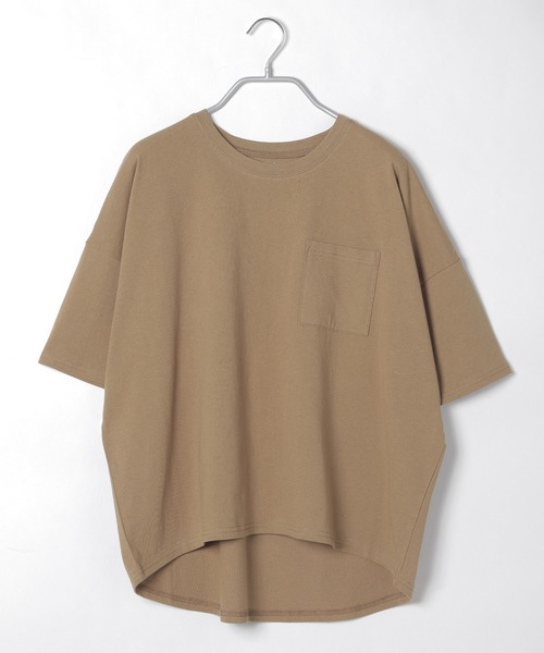 シンプルなポケット付きTシャツ。ワイドなシルエット×前後差のある着丈で、コーディネートバランスの取りやすい長さに設定しています。【素材】ふっくらとしたボリューム感のコットン100%素材を使用。ナチュラルでざっくりとした風合いが特徴です。【スタイリング】デニムやワイドパンツ、ロングスカートなど…、ボトムスを選ばずに使える1枚。ベーシックなカラー展開で、何枚もそろえたいTシャツです。