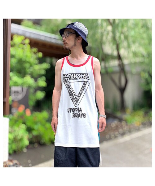 ALDIESオリジナルのタンクトップ。 80'sライクな、着丈長めのシルエットです。 サイドには深めにスリットが入っており、よりラフさを演出。 スリット部分のコードで、シルエットの調整ができるのはもちろん、コード自体もアクセントになります。 サマーシーズンのタウン~フェスなどのイベントまで幅広く活躍してくれる1着です。 素材:コットン100% サイズ:着丈75cm・総丈82cm・身幅50cm 男性モデル:178cm 男性スタッフ着用画像:171cm・55kg ※お使いの機種等によってはお色が異なって見える場合がございます。 ブランド品番:A1201710