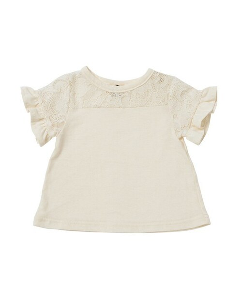 首元と袖まわりにレースをあしらったシンプルながら上品なカットソー。同じレースを使ったママ用アイテムもご用意しているのでリンクコーデが楽しめます。 素材:本体:綿100%、切り替え:ポリエステル100%
