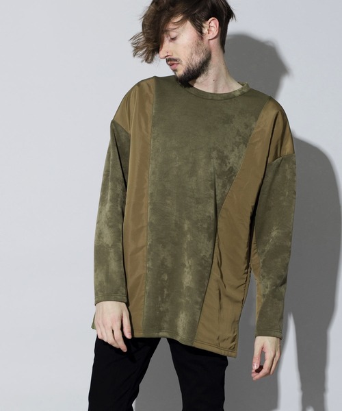 2020 AUTUMN WINTER NO ID. COLLECTIONボンディングスエット切替C/N BIGプルオーバー異素材で切替えたオーバーサイジングのトレーナーです。スエードライクな光沢を抑えたマットな質感のスエットと微光沢のポリエステル素材との切替で落ち着きと艶っぽさを演出。カラーバリエーションもトーンを抑えて渋いアースカラー系などを加えたラインナップ。スニーカー と合わせて大人なテック系スタイルのインナーとして活躍する一枚となっています。
