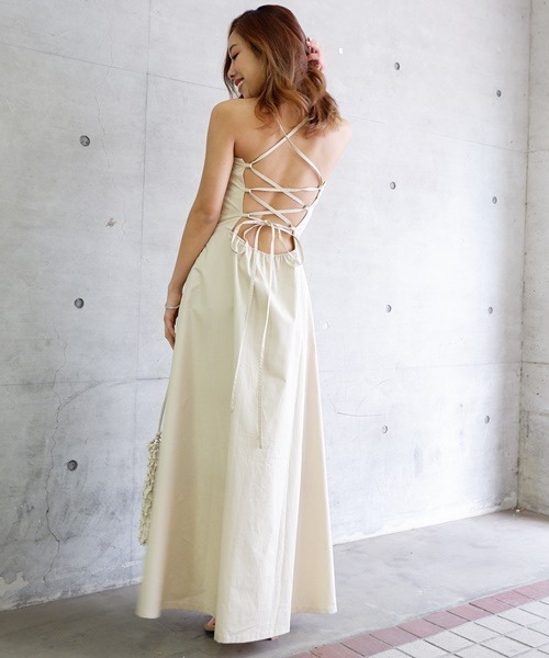 自然に広がるマキシ丈と、バックデザインがポイントの、リラックス感あふれる一枚です。大胆なバックオープンデザインは、シャツ・タンクトップとのレイヤードにはもちろん、お洒落なインナーと合わせたスタイリングにもおすすめ◎デイリーはもちろん、リゾートにも活躍しそうな、夏に必須のアイテムです。**********************透け感:なし裏地:あり伸縮性:あり光沢感:なし生地の厚さ:普通付属品:なし**********************※モニター・環境等により実際の商品と多少色味が異なって表示される場合がございます。 予めご了承をお願いいたします。※サイト上のカラー名と、お届け商品に記載されているカラー名が異なる場合がございます。※他のキャンペーンにより、期間中に価格が変動する場合があります。※セールは予告なく終了させていただく場合もあります。
