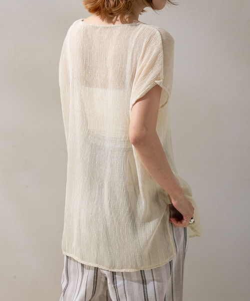 シアートップス×キャミソールのアンサンブル。 プリーツ加工が施された柔らかく繊細なシフォン素材で仕上げたブラウスは、程よく透け感があり、さらっと着るだけで大人の女性らしさを演出してくれます。 キャミソールが付いているので、インナーの心配もなし◎ トレンドのワンショルデザインやベアトップなど、インナー変えることで表情が変わり、新鮮なコーディネートが楽しめます。 スラックスなどパンツ合わせでカジュアルに、スカート合わせでフェミニンに。ON/OFF問わず着用頂けるアイテムです。 ********************** 透け感:ブラウスややあり インナーなし 裏地:なし 伸縮性:あり 光沢感:なし 生地の厚さ:薄手 ********************** ※ご覧のモニター環境や撮影環境により実際の商品と多少色味が異なって見える場合がございます。 ご理解の程よろしくお願いいたします。 【お買い物をよりお楽しみいただく為に】 ▼商品のお気に入り登録をおすすめします ♡をクリックしてください。 完売カラーの再入荷や、ラスト1点の通知、 セールの際の通知を受ける事ができます。 ブランドのお気に入り登録もご一緒にお願い致します。