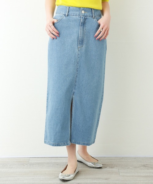 フロントとバックに程よいスリットが入り、脚さばきの良いデニムロングスカート。 裾に向けて程よいタイトなデザインがシャープなシルエットに魅せます。 ハイウエストでも履けるので脚長見せ効果◎ シーズンレスで使えるので、モードにもカジュアルにも、日常使いにぴったりです。 着回し力も抜群なアイテムです。 ※屋外の光や照明の当たり具合、パソコンなどの閲覧環境によって実際の色味と異なって見える場合がございます。 予めご了承ください。