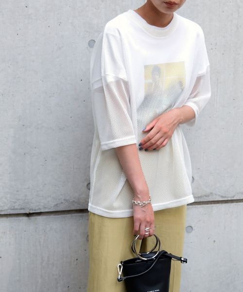 ※こちらの商品は【メール便】にてご配送となります。 (他の商品と一緒にご購入の際は、商品に寄って【宅配便】の配送料となります。) ーーーーーーーーーーーーーーーーーー ◆アイテム詳細◆ スポーティーなメッシュ素材を使用した《メッシュレイヤードTEE》。 大人っぽく着られるようにプリントTシャツコーデもポイント。 1枚でももちろん、ジャケットやシャツを羽織るときのインナーにも重宝します。 TOPSとのレイヤードスタイルが楽しめます。 ーーーーーーーーーーーーーーーーーー 【セレクト】HAL 【COLOR】ホワイト・カーキ・ブラック 【SIZE】Fサイズ 平置き(㎝) 着丈63 身幅63 裄丈56 裾幅64 【素材】本体 ポリエステル 100% 別布 ポリエステル 60% レーヨン 35% ポリウレタン 5%