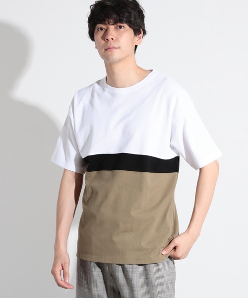 異素材ミックスのデザインTシャツ。 天竺と鹿の子をドッキングし、3カラーを組み合わせました。 【素材】 コットン100%の天竺素材と、夏らしい鹿の子素材をミックス。 【スタイリング】 デニムやワイドパンツ、ショートパンツなど…どんなボトムスにも合わせやすいアイテム。 インパクトのあるデザインなので、シンプルな合わせがオススメです。
