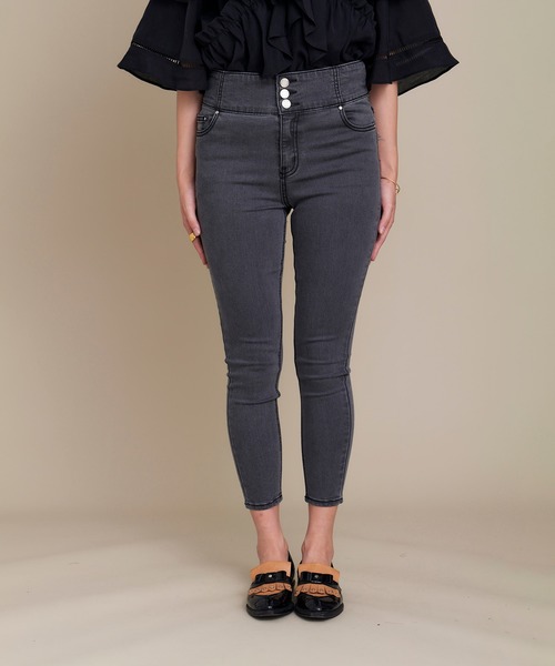 履き心地にこだわって作ったスキニーパンツ。見た目はデニムですがすごく伸びが有り、履きやすいです。 足の一番細い部分である足首が見える丈ですっきり感も出しました。