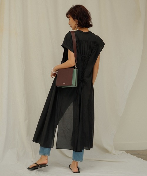 ■コーディネートの幅を広げるシャツワンピース■ 軽やかな薄手の素材を活かしたロングシャツワンピース。 フロントにはピンタック、バックスタイルには、レースアップディティールを施し、薄手の素材ですが、程よいボリューム感を演出。 夏らしいシアーな素材なので、インナーには抜け感のあるキャミソール、ボトムもシンプルなデザインのものでまとめると、大人なこなれ感あるスタイリングが完成。 定番のオフホワイト、ブラックに、目を引くイエローグリーンの差し色を加えた3色展開でご用意致しました。 ◆◆◆商品のお気に入り登録◆◆◆ 完売していても再入荷時に再入荷通知を受け取ることができたり、ラスト1点の通知やセールの通知を受け取る事が出来ます☆ ◆◆◆ブランドのお気に入り登録◆◆◆ 新商品や再入荷などの最新情報を受け取ることができます♬是非ご登録ください☆ ※屋外での撮影画像、お客様がご覧になる環境により、商品の色味が違って見える場合があります。 商品の色味は、スタジオ撮影の画像をご参照ください。