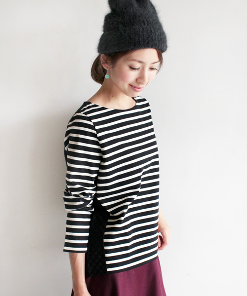 シンプルなバスクボーダーのカットソーに、幾何学柄のジャカード生地をコンビに仕上げたデザイントップスが登場♪バックにタックを入れることでたっぷりとした張りのあるシルエットを実現しました。一枚ばさっと着ていただくだけで、スタイリングの主役になる一着。前身ごろと後ろ身頃の丈に差をつけることで、より立体的なニュアンス感のある仕上がりに。今年はミモレ丈のスカートや、テーパードパンツと合わせて、一味違うボーダートップスをお楽しみください。店舗にてお問い合わせの際は、全国のBEAUTY&YOUTH 各店舗まで下記の品番をお申し付け下さい。品名:□BBC BACK/KIKA/JQ BSQ 品番:1612-226-3646※※画像の商品はサンプルです。実際の商品と色味、仕様、加工、サイズ、素材等が若干異なる場合がございます。