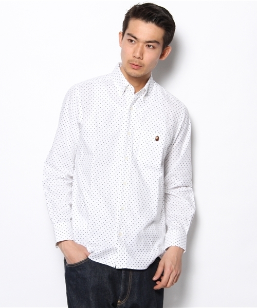 オックスフォード素材にドット柄をあしらった上品なシャツ。フォーマルな場面でも活躍できる一枚。 model:H184 B90 W73 H90 着用サイズ:LARGE