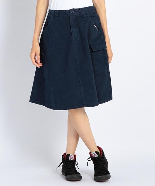 注目のミリタリーテイストが、レディなミドル丈スカートにもプラスして登場です。ボリューム感のあるフレアシルエットを、ポケットがほど良くカジュアルダウンしてくれています☆どんなスタイルにもあわせやすい、ヘビロテ間違いなしのアイテムです!