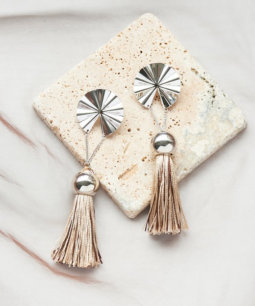 【メタル×タッセルの異素材ロングピアス】お花のようなメタルパーツ×タッセルの異素材MIXのボリュームピアス。チェーンの先で揺れるタッセルが視線を集めます。1点投入で存在感のあるトレンドのピアスです。その他1…シルバー×ブラックタッセルその他2…シルバー×ブルーグレータッセルその他3…シルバー×ブロンズタッセルその他4…ゴールド×ベージュタッセルその他5…シルバー×ベージュタッセルブラウン系その他…シルバー×ブラウンタッセル---------------------------------------------------amplis(アンプリス) 海外で買い付けてきたアクセサリー・小物などのアイテムを中心に展開。日本には無いどこか自由気ままなアイテム達です。amply [十分な、十分に] s” 複数形 = [十二分にも] amplisのアイテムは日々の日常を、そして自身を彩るスパイスです。あなたの[十分]を、[十二分にも]にできますように。+2のあなたになれますようにと願いを込めて。。”---------------------------------------------------