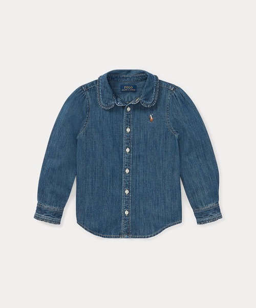 藍染めのデニムにマルチカラーのシグネチャーポニーをあしらった薄手のシャツ。コーディネートにアメリカンな魅力をさりげなくプラス。・洗濯機洗い可・左胸にマルチカラーのシグネチャーのポニー刺繍・ラッフルトリム付きのクラブカラー / ボタン付き前立て・長袖 / ラッフルトリムを施したボタン付きバレルカフス・シャーリング入りのバックヨーク・藍染めを施したアイテムであるため、他の生地、レザー、室内装飾品に色移りすることがあります。 Toddler(GIRLS (AGE 2-7/95~120cm))