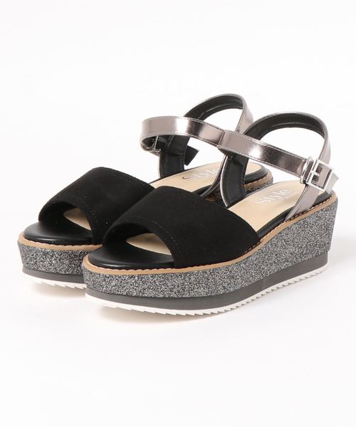 シンプルなストラップサンダルも、ソールに散りばめた細かなラメがさり気ないアクセントに。 異素材やカラーコンビのストラップもお洒落見えのルックスです。 アッパーの裏材には足あたりソフトなウレタン素材を使用しました。 程よい厚底ソールでスタイルアップ効果も◎