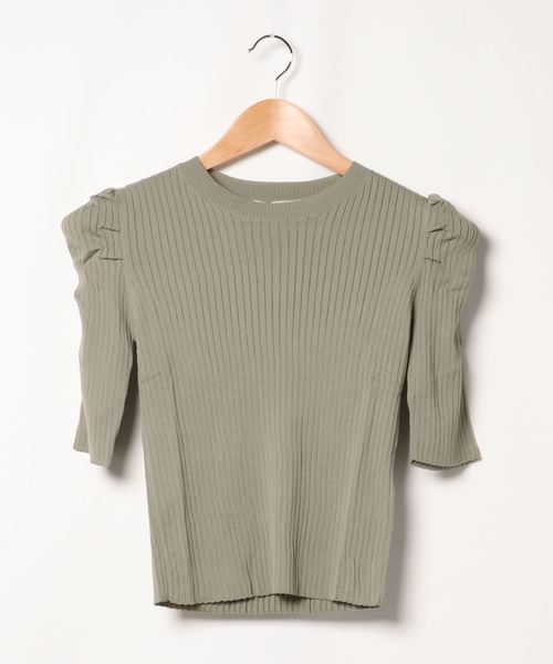 くしゅくしゅっとアクセントを加えたパワショルと、肩のゴールドボタンが上品なニットトップス。ほど良くフィットさせたシルエットでどんなボトムとも相性抜群の1枚です。スカート合わせでキレイ目にもデニムと合わせてカジュアルダウンするのもオススメ。無地とボーダー柄をご用意しました。 【素材・サイズ感】柔らかなリブニット素材でスッキリとした印象に。ゴールドボタンが顔周りを華やかにしてくれます。ボリュームのあるスリーブデザインと5分袖が気になる二の腕周りもカバーしてくれるのも嬉しいポイント。