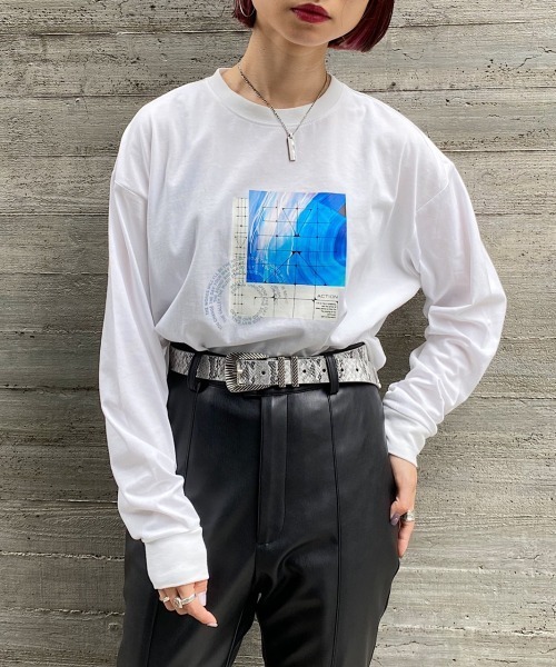 ◆架空のレコードジャケットをイメージしたプリントロンT◆モードやストリート感を感じられるプリントです。プリントカラーは綺麗なグラデーションを表現。ロゴにはオーロラの箔プリントを施しポイントに◎一枚で主役になるロンTです。ルーズなパンツ合わせがおススメです!※撮影環境により、光の当たり具合で 色味が違って見える場合があります。 あらかじめご了承下さい。