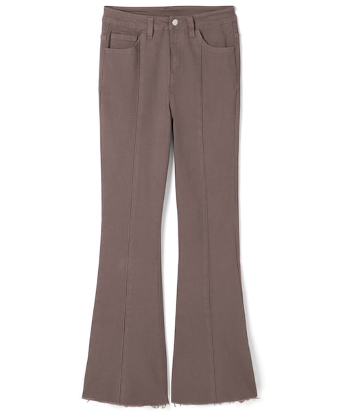 裾に向かって広がるフレアなシルエットで、脚長効果抜群。 フリンジヘムがアクセントに。 センターラインが縦の線を強調し、すっきりした印象に。 ★ポケット付です。 ★裾は切りっぱなしのデザインです。
