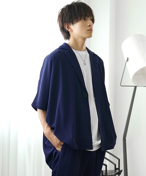 【とろみ素材ビッグドルマンテーラーJKT】 夏のカジュアルな装いを、一瞬で品良くしてくれる半袖テーラードジャケット。 身ごろから袖に向かって滑らかな曲線を描くドルマンスリーブにすることで、カッチリ感が程よく中和され、リラックスした雰囲気で着ることができるジャケットです。 柔らかく、軽やかなとろみ素材を使用。 程よいツヤ感が上品で、清潔感のある好印象に◎ また、優しく肌を包み込む質感なので、着心地もストレスフリーな仕様に仕上げました! ●推奨サイズ S:~ 168cm M:169cm ~ 175cm L:176cm ~ ●モデル着用サイズ 男性モデル:175cm|Mサイズ ■生地の伸縮性 ・・・ 伸縮します。■生地の透け感 ・・・ 透けません。 ■生地の厚み ・・・ 少し薄手の生地です。 ■着用のサイズ感 ・・・ ゆったりしたサイズ感です。 ■裏地の有無 ・・・ 無し。 ============================= 【お買い物をもっと便利に楽しく♪】 ■商品のお気に入り登録をすると・・・完売カラー・サイズの再入荷通知や、ラスト1点の通知、お得なセール情報も受け取ることができます! ■ブランドのお気に入り登録をすると・・・新商品や再入荷のお知らせなどいち早くブランドの最新情報を受け取ることができますのでご登録をオススメします!