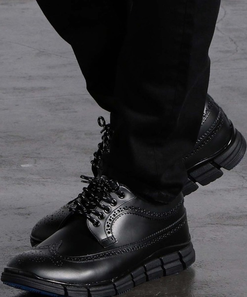 【見た目は革靴、感覚はスニーカーの王道シューズ】毎期好評で完売することの多い、HIROSHI TSUBOUCHI×MEN'S BIGIの別注ウイングチップシューズの2020A/Wモデルが登場今季は3色展開で登場好評のオールホワイトカラー、通勤やビジネスユースにも使用できるオールブラックカラーは継続新作としてホワイト×ブラックの2トーンカラーをラインナップしました。見た目はドレッシーでシャープな印象ですが、ソールは非常に軽量なスニーカーソールを採用。驚異の履き心地を体感できます。セットアップやジャケットスタイルはもちろん、デニムやイージーパンツと合わせてあえてハズシで合わせるコーディネートもおすすめです。【別注ポイント】インラインから「メダリオン」のデザインをチョイスインソールカラーをメンズビギのオリジナルへ変更しました。シューレースの替え紐としてアッパーと同色の紐が付属します。【サイズ表記に関して】商品タグにはサイズ部分に数字が表記されています。01は25~25.5cm、 02は26~26.5cm、 03は27~27.5cmを表します。【HIROSHITSUBOUCHIヒロシツボウチ】長年靴の企画デザインに携わり、2008年よりそのキャリアの集大成として自身の名を冠したブランド「HIROSHITSUBOUCHI」をスタート。ポップ感覚を感じさせる靴はちょっと風変わりで、自由なデザイン。ファッション業界はもちろんのこと、芸能界や著名スタイリスト、デザイナーなど多くのファンを持つスタイリッシュなデザインそしてメイド・イン・ジャパンの技術、高いクオリティが凝縮されたコレクションです。
