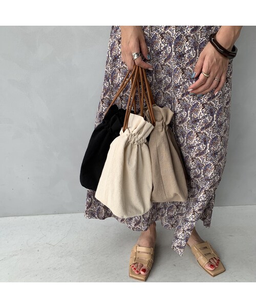 《コットン巾着バッグ》 手持ち、ショルダーとして使える2WAY仕様の巾着バッグ。 素材も柔らかく軽いので夏のお出掛けにぴったり◎デイリーに使いやすいのも魅力の1つです。シーンやコーデスタイル、多様に合わせていただける万能アイテムです。 ◾︎サイズ 縦 30cm / 横 29cm / マチ13 cm ※ 独自の平置き採寸のためサイズに誤差が生じる場合がございます。大体の参考までにご覧頂きますようお願い致します。