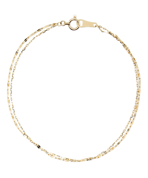 二種類のチェーンを使用した新鮮な二連ブレスレットは、腕にまとわせた時のレイヤー感が贅沢な印象。シンプルですっきりとしたディープカットチェーンをベースに、ドレープ状に重なるファンタジアチェーンのフリルのようなデザインが豊かな輝きをそえます。一本でもしっかり満足感のあるチェーンブレスレット。 [おすすめ]ワンピース カジュアル ニット Tシャツ オフィス 通勤 結婚式 パーティ プレゼント ご褒美