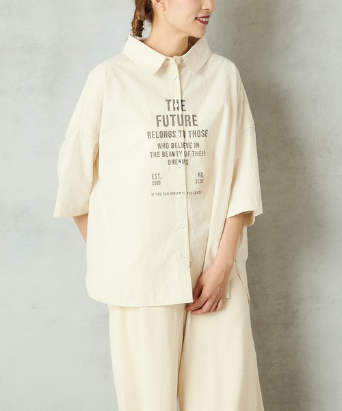◇おしゃれに差がつくフロントプリント◇ フロントのロゴプリントがカジュアルな印象の前開きシャツ。 前開きタイプなので羽織としても使って頂けます。 襟抜きでゆるっと羽織るのがおすすめ。 ボトムスはカジュアルなパンツからきれいめなセンタープレスパンツまで幅広く合わせて頂けます。 ワンピースなど女性らしいアイテム合わせもおすすめです。 ・カジュアルなフロントロゴプリント ・肌ざわりが気持ちいい麻素材 ・ワンピースやパンツ合わせがおすすめ =============================== 透け感:なし 裏地:なし 伸縮性:なし 光沢感:なし 生地の厚さ:薄手 洗濯:手洗い可 【スタッフコメント】 年齢:30代後半/身長:153cm/普段着用サイズ:Sサイズ サイズ感:ゆったりとしたサイズ感。一見メンズライクなアイテムですが、ワンピースやレースノースリーブなどの上にあえてオーバーサイズで着ることで女性らしくこなれた着こなしを楽しめます。 素材感:薄手でシャリシャリとした素材感 =============================== ※撮影場所やお使いのモニター環境により若干お色味が異なる場合がございます。特にロケの撮影では明るく見える傾向にございます。 ※予約商品はサンプルで撮影をしております。若干の仕様が変更になる場合がございますので予めご了承の上ご注文くださいますようお願いいたします。