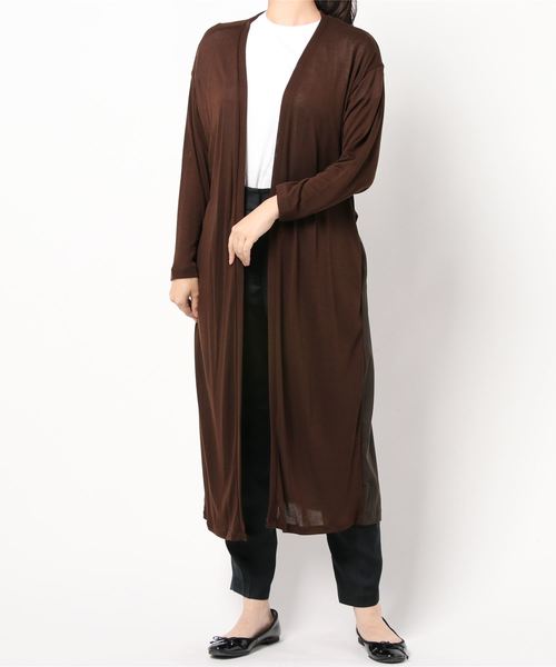 吸湿冷感のメリット付き着回し力万能なロングカーディガンこれからのシーズンに嬉しい吸湿冷感のメリットが付いたロングカーディガン。吸い取った汗を冷たく冷却。汗を吸収するため着用時の蒸し暑さを軽減し、快適に着まわせます。また、さらりとした質感は、気温が不安定な時に重宝すること間違いなし!レーヨン糸を使いしなやかな落ち感で美シルエットなスタイルが完成。バックに異素材を使用し重たくなり過ぎない印象に仕上げました。バックにベルトを付けてきちんと感をプラス。程よくゆとりがあるサイジングが、さらりと羽織るだけで、こなれ感のあるスタイルに仕上げてくれます。手洗い可能でご自宅でのイージーケア(手洗い)ができます。 *ブラックのみ異素材はチャコールグレーの配色になります。(その他のカラーは同色系)INTERPLANET/actuel(インタープラネット/アクチュエル)・conceptいつだって私らしく、私自身のスタイルが決まる。。。時代や年齢に媚びない『らしさ』を纏って生きる女性へ。旬なベーシックと抜け感のあるカジュアルをMIX。そんな大人カジュアルコーデを提案します。・お気に入りの登録についてショップ、ブランドのお気に入り登録でクーポンやタイムセールの通知などお得な情報を受け取ることができます♪また、気になるアイテムのお気に入り登録でセールや再入荷の通知など受け取ることができます。