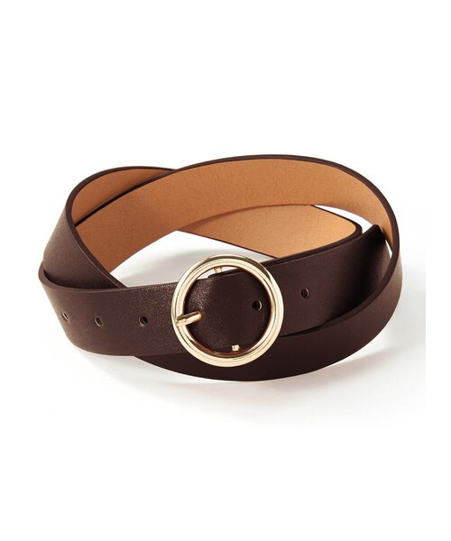 艶めくリングモチーフがレディライクなベルト。 すっきりとしたフォルムで品良くウエストマークしてくれる。 無駄な装飾を省いたミニマルなデザインでコーディネートに取り入れやすい一本。 主張しすぎないデザインは様々なスタイルで楽しめる。