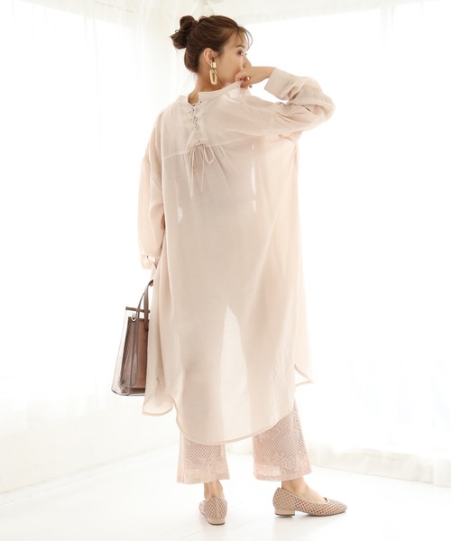 ~NICECLAUP 2020 Summer Collection~ ■ワンピースとしても使えるシャツが登場!! 後ろがレースアップデザインになったロングシアーシャツ。 羽織りとしても、ワンピースとしても使えるのが魅力のアイテム。 今年らしい透け感がこなれた雰囲気を醸し出してくれます。 下にキャミソールやTシャツを着てトレンドライクなスタイリングが完成します。 レースパンツやプリーツパンツ合わせなどがおすすめです◎ ※サンプルでの撮影のため、実際のものと仕様や色が異なる場合があります。 ※室内、室外での撮影のため実際より明るく映っていたり、暗く映っていたりする場合がございます。 ※品質表示を必ずご確認下さい。 【商品のお気に入り登録】 完売カラーの再入荷や、ラスト1点のお知らせ、セールの通知を受け取ることができます。 【ブランドのお気に入り登録】 新作入荷や再入荷情報など、ブランドの情報をいち早くお届けします。 ぜひご登録ください♪