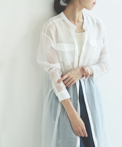 【羽織りにもなるコスパ高めなシャツワンピース】【Design/Styling】シースルー感が今季らしいシャツワンピース。ボトムと合わせて一着で着ても、羽織りとしても様になるコスパ高めの一着。体温調節が難しい季節にも便利なアイテムです。【Fabric】ウォッシュしたような絶妙な質感がこなれた雰囲気を演出。薄手なのでカーディガン代わりにもぴったり。