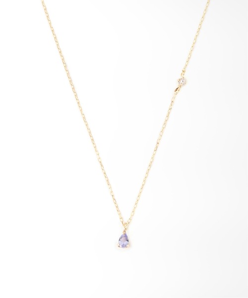 ペアシェイプ型のタンザナイトをチェーンに通し、片側にダイヤモンドをあしらったネックレス。 小さなルースは、デコルテにさりげない存在感と華やかさを与えてくれます。神秘的なブルーが視線をひきつけます。 ※横からの衝撃や強い衝撃による石外れにご注意ください。 ※天然石は非常に繊細な宝石のため、落下や衝撃にご注意ください。 ◆◆Lilas◆◆ 人を想う気持ち、さまざまな願い、人との出会いや記念日など、 かたちに出来ない大切なものをジュエリーに託して― **Lilasのアイテムをご愛用いただくにあたって** ※ジュエリーは繊細です。衝撃や摩擦・引っかかりにはお気をつけください。 ※水での手洗い・浴室で使用は控えてください。 【地金について】 ※着用により傷がついたり変色する可能性があります。 ※汗や油分がついたまま放置すると変色の原因になりますので、柔らかい布等で拭き取っていただき保管をお願いします。 ※メッキやマット加工は風合いが損なわれるため、研磨剤でのクリーニングはお避けください。 【然石について】 ※1点ずつ色ムラ・内包物・表面の細かな傷等個体差があります。 素材の特性とご理解いただきご愛用ください。 ※衝撃には特にご注意ください。ヒビや欠け、割れの原因になります。 ※超音波洗浄機のご使用はお避けください。 ※接着剤を使用して石を留めているものは水に濡れるとはがれ、石がはずれることがあります。 ※こちらの商品は、Spick & Span(Lilas取扱店)のみの取り扱いとなります。 直接店舗へお問い合わせの際は下記のLilas取扱店舗へお願い致します。 Lilas取扱店舗:ルミネ池袋店・ルミネ新宿店・ルミネ有楽町店 ※店頭及び屋外での撮影画像は、光の当たり具合で色味が違って見える場合があります。 商品の色味は、スタジオ撮影の画像をご参照ください。 ※商品包装についてはビニールによる包装となり、保証書・説明書の付属はございません。 Lilas商品包装に関して店舗と異なりますのでご了承ください。