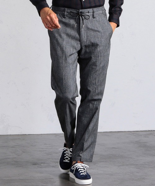 【着こなし自由なイージーパンツ】上品なデザインと軽やかな穿き心地が魅力の一本 ウエストのドローコードは内側に収納可能なため、ベルトスタイルにも対応 着こなしに応じて様々なスタイルを楽しめる、汎用性の高い1本です。 【素材・デザイン】 愛知県の尾州地方で生産されているデニム調のシャンブレー素材を使用。 シャンブレーは使い込んでも色落ちに耐性があるという特徴があります。 程よいストレッチでカチっとした見た目に対してノンストレスな着用感が魅力です。 ウエストにはゴムが入っており、さらにドローコードで調節も可能 自宅の洗濯機でお手入れが可能なウォッシャブル対応です。 【コーディネート】 セットアップの組下としてデザインされているのでジャケットとの相性は抜群です。 イージーパンツのように履いてカジュアルなコーデもオススメ 幅広いスタイルをお楽しみいただけます。 【サイズ表記に関して】 商品タグにはサイズ部分に数字が表記されています。 01はSサイズ、 02はMサイズ、 03はLサイズ、04はLLサイズを表します。 ※着用画像は光の加減等で仕様が異なる場合があります。 ※着用画像はサンプルのため仕様が異なる場合があります。