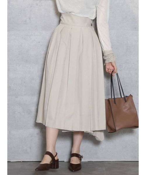 【ITEM】 二種類のプリーツがデザインされており、単調にならない所がポイントです。フェミニンとカジュアルの両面の魅力を兼ね揃えたプリーツで躍動感のある柔らかなシルエットを実現。 【スタイリング】 ウエスト切り替えを深く取り、コンパクトなTOPSをとのスタイリッシュなスタイリングがおすすめです。プリーツの魅力を最大限に活かす為、シンプルなアイテムとで纏めましょう。サラりした生地合いになりブラウスにもニットにも対応可能です。