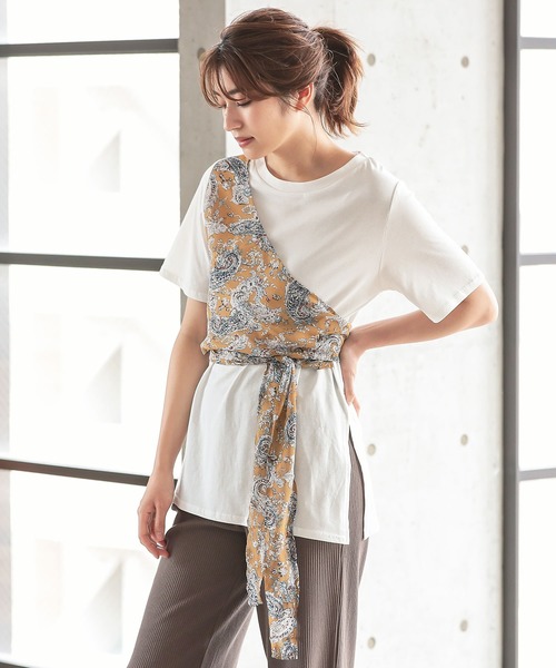 ワンショルダーのビスチェとレイヤードしたような着こなしを楽しめるドッキングTシャツ。Tシャツの程よい抜け感が大人っぽくスタイリングをまとめてくれます。無地×無地と、無地×ペイズリー柄の3カラー。 【素材・サイズ感】素肌に着ても快適な綿素材のカットソーと落ち感のある滑らかな素材感のビスチェ部分。ゆったりと着れるサイズ感に、ビスチェのスタイルUP効果が嬉しいポイント。