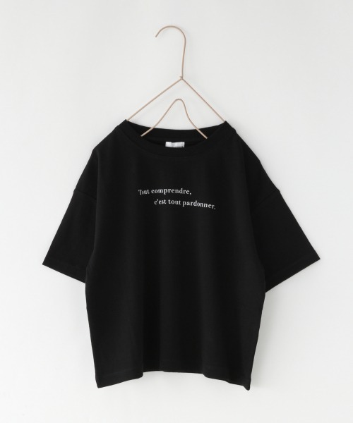 定番のロゴプリントTのキッズバージョン。 シンプルなロゴTなので、ボトムスはスカート、パンツどちらとも相性が良く、男女ともにオススメです。大人用もご用意しているので親子お揃いでも着ていただけます♪